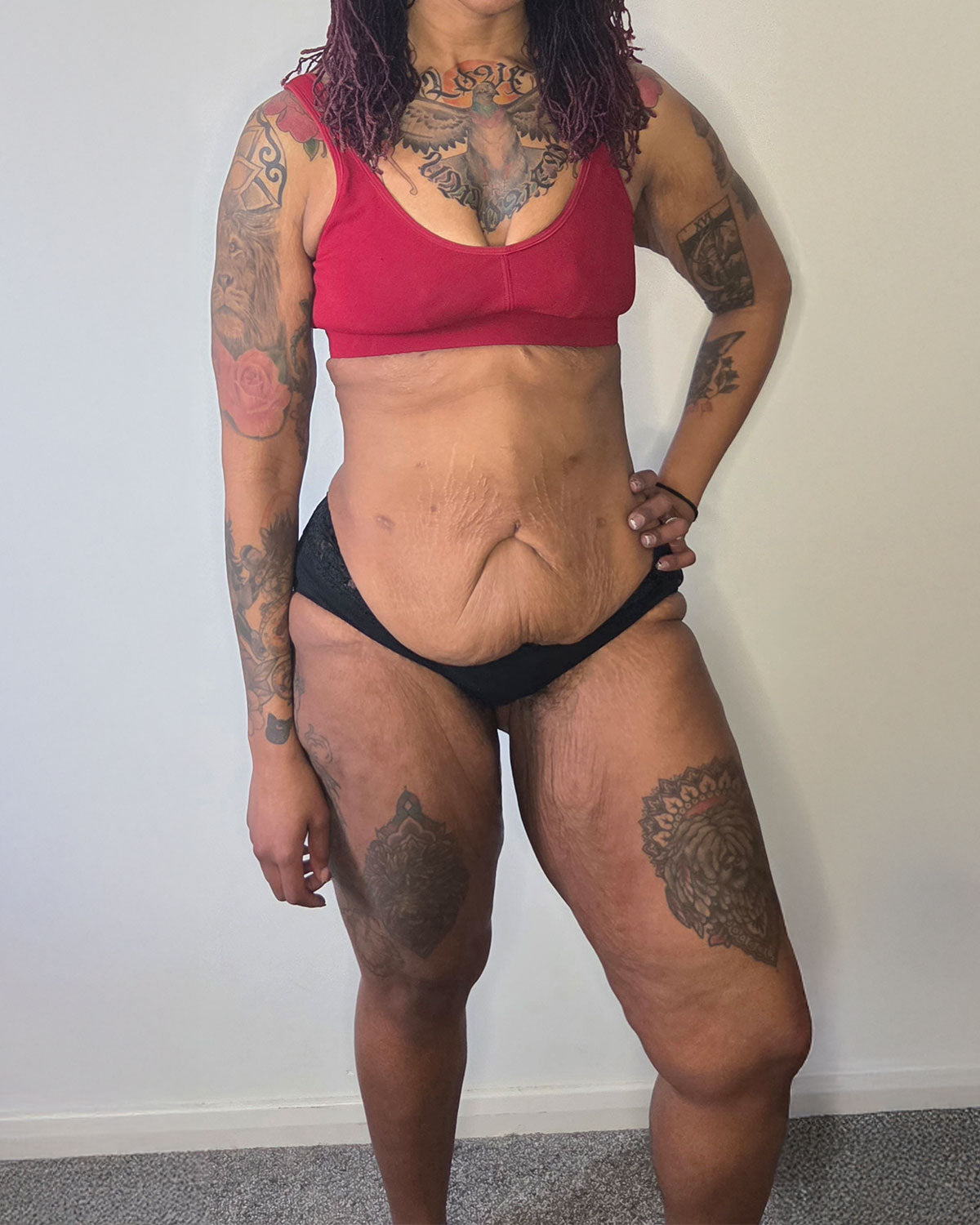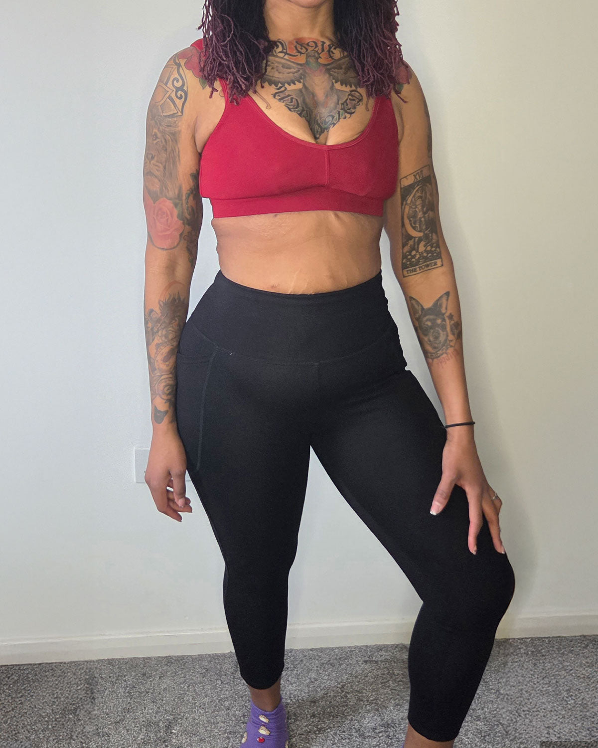 "I’ve been wearing Snags since before my weight loss, and their leggings are a staple in my gym wardrobe. My thighs have a lot of loose skin and are prone to rubbing, so I really appreciate the flexible and comfortable support of the leggings, plus deep pockets are a must!"