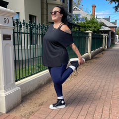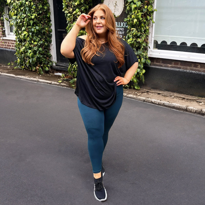 Whether you're headed to the gym or just looking for a wardrobe basic, this black off-the-shoulder tee has got you covered. It’s a versatile fit, ideal for wearing loose for a relaxed look or tied and knotted for retro vibes, plus its made from super soft lightweight material perfect for these changing seasons. Pair with our leggings for a comfy look you'll want to wear every day.
