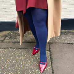 Huggy is back! Now in Navy, a great alternative to black, these tights give you light compression on your legs without compromising comfort. After lots of development and extensive trials, Huggy tights have a new knitting structure, specifically knitted with tension to provide light compression, ideal for anyone who works on their feet all day and needs that little extra boost. Keep your circulation flowing in your legs and help prevent aches and pains after a long shift with these light compression tights that fit!
