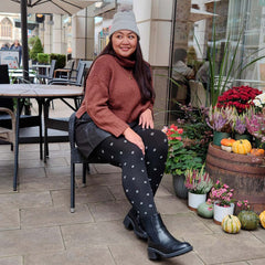 It’s a polka-dot Christmas, and Polka Bear is here to make it sparkle! With silver lamé dots twinkling on a black base, these 80 denier tights are all about festive fun. Perfect for a little shimmy under the mistletoe or a night out that calls for extra shine, these glitter polka dot tights are made to dance, dazzle, and keep the holiday spirit bright.