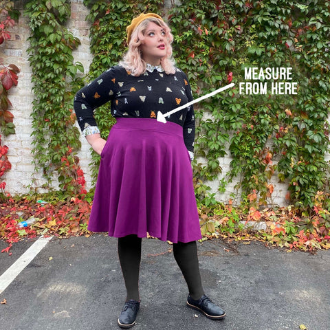 Our skirts are all designed to be high waisted, so please keep that in mind when taking your measurements!