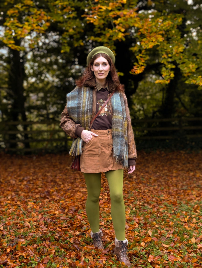 Our 120 denier opaque tights are a proper winter essential, and now in Fern, a rich, muted green. This shade whispers of will-o’-the-wisps in the forest and brings a touch of woodland magic to your winter wardrobe.