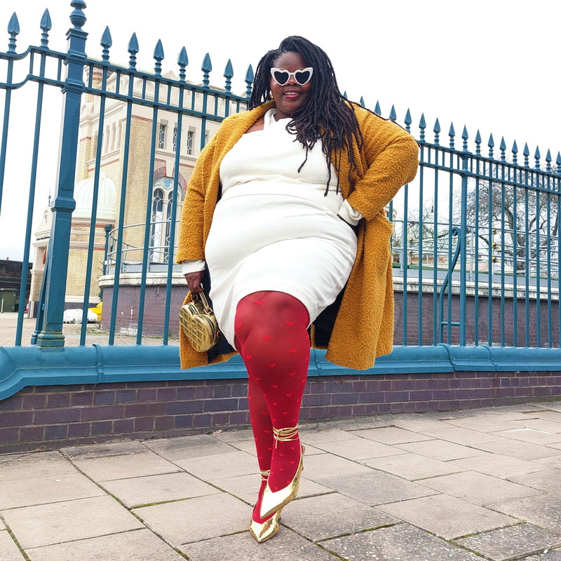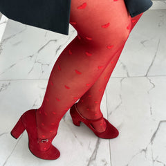 Share the love with our gorgeous red 40 denier tights with a love heart design knitted right into the base. These tights are super stretchy and strong and made to last - so you can wear them again and again - no disposable tights here. Designed to really fit, they'll keep you comfortable while looking great all day long.