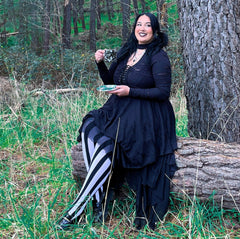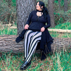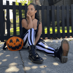 Betelgeuse, Betelgeuse, Betelgeuse... You will want to say the name of these vertical striped tights three times! These Betelgeuse tights are great for spooky season, but totally wearable all year. Designed to fit every body, they're super stretchy and comfy and have the design knitted right to look great no matter. Made to last wear after wear, you really need these tights.