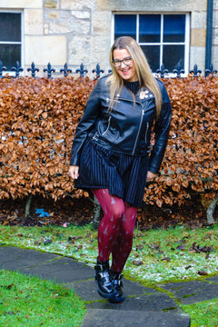 Meet Enchancted Forest, cosy 80 denier tights with a deep burgundy base and shimmering silver tree motifs scattered up the legs. They create a magical woodland scene that catches the light beautifully, adding a subtle touch of sparkle to any outfit. Soft, warm, and wonderfully comfortable, they keep you feeling snug while adding a playful, whimsical twist to your style.