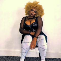 Who loves a haunted doll? We do, we do! Stitched up patterned tights are a frighteningly white 80 denier base, with knitted black stitching criss crossed around both legs. With all the usual goodness of Snag tights, these are super comfortable with plenty of stretch for an epic fit every time.