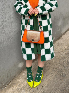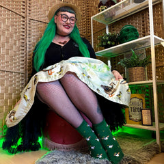 Featuring an adorable parade of waddling ducks across a rich dark green background. Whether you’re heading out for errands or lounging with tea in hand, they add a little extra whimsy to your steps.
