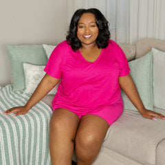 Built for pure comfort day or night, meet our Burnout Sleep Tee in Barbara, our signature vibrant hot pink, paired with our matching Femme Boxer Shorts. Comfort is everything for a good night's sleep, and this set delivers.