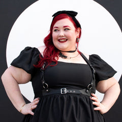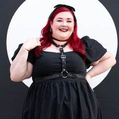 Body harnesses that fit are so hard to find, so you know Snag had to create a stunning O-Ring body harness, in our whole size range. This is a super soft, faux leather, with adjustable straps, metal buckles and O-ring detailing. It has stretchy panels hidden at the sides, so you can still breath when moving or sitting down. It can be worn two ways, with the O-rings to the front down the chest, or buckle front as an under bust. It's bold, it's a statement and it really fits.