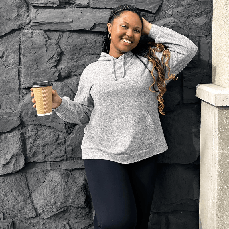This soft and stretchy grey marl loungewear hoodie is great for when you want to unwind in style. Super comfy this hoodie is snuggly warm without over-heating due to breathable materials. With a big front pocket for all your bits and pieces and an elasticated waistband to keep it in place, this hoodie will keep you cosy all day long.