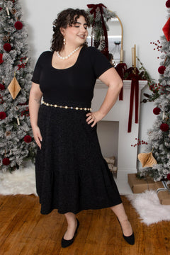 Lurex Tiered Midi Skirt - Black