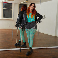 Our bestselling Blackadder party tights give you a fishnet feel with extra coverage in this bright mint colour. These faux fishnets are not only super stretchy but easy to put on and have the same 3D stretch as our regular tights. Strong and long-lasting, these tights aren't one wear and throw away - they're made to wear again and again.