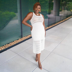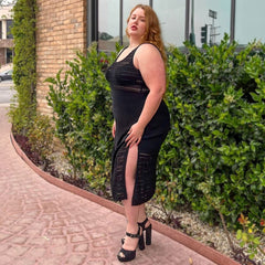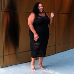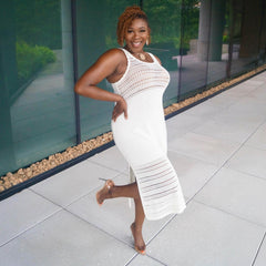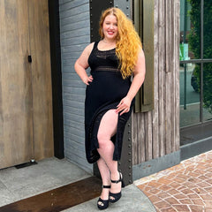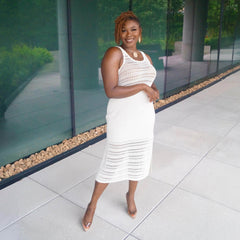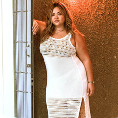 Knit to perfection. The Porto Fino Dress is a stunning knitted design, with a scallop edge finish. It's a midi length, with deep side splits on both sides and thick comfy straps. The arm holes are made to fit and it is super stretchy, so there is no digging in under the arms. This is a luxe dress, with weighty knitted fabric where you can see and feel the quality. It drapes beautifully and will be a piece that stays in your wardrobe for years and lasts wash after wash.