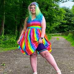 Show your pride in style with our purple and rainbow chub rub shorts. Not only are these shorts epicly cute, they're also anti-chafing and made to keep you cool no matter what you get up to. With 12 inches of multi-dimensional stretch, these shorts will actually fit you beautifully and won't dig in or roll down for ultimate comfort.