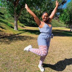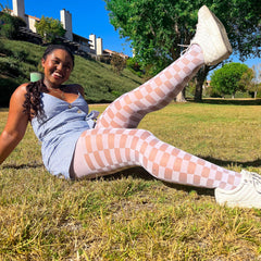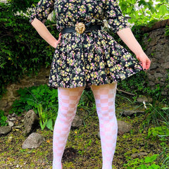 Our Racy white checkered flag-patterned tights look great on their own or layered for extra dimension. The mixed denier is strong and durable so these tights can be worn again and again. Stretchy, soft and comfortable - these are tights that really fit.