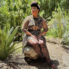Snag animal print tights are super wearable and absolutely stunning. Nocturnal (leopard print) and Your Highness (Giraffe print) are a mixed denier, they have a more sheer base with the patterns in a higher denier, knitted into the fabric not printed on, so they look darker. Zebra Cadabra (Zebra stripes), have the stripes knitted into the fabric and have combined two knitting techniques to make a mixed denier pattern, combined with a metallic yarn for sparkly stripes.