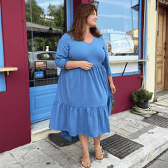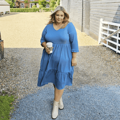 The denim tiered midi dress is designed to actually fit every body - we mean it. With a graduated hemline, 3/4 length ruffle sleeves which are soft and stretchy without digging in, this dress looks super cute while being as comfortable as possible. It's made from breathable cotton and can be worn year-round. Add on some pockets (which it does) then you've got yourself the perfect dress.
