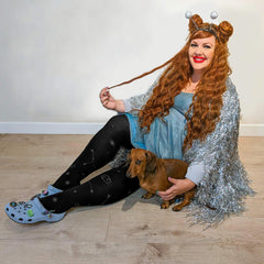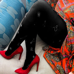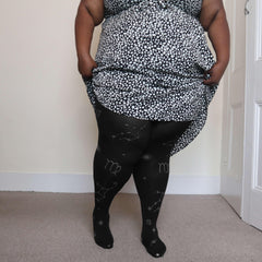 Zodiac pattern tights are a must for any sign. A stunning starry constellation glitter print on a black base. They're designed to fit everybody and look great on all legs. They're comfy, stretchy and won't roll down or dig in. Just tights that really fit.